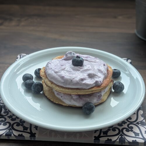 - Die beiden Pfannkuchen mit der Creme bestreichen.